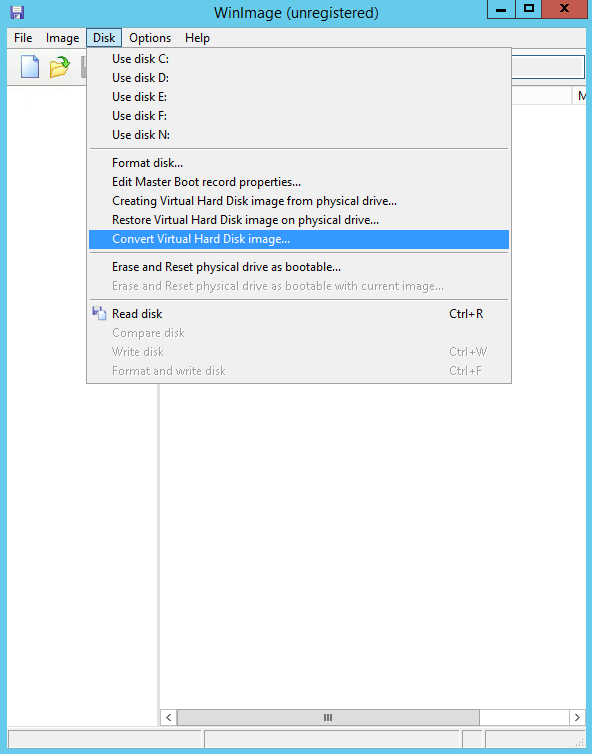 Copy over the single file to your windows server or workstation running hyper v. Ensure you have the win image software installed. You can download a trial.